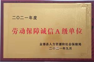 榮獲:勞動保障誠信A級單位