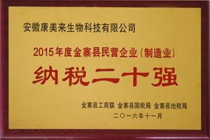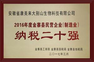 榮獲:2016年度金寨縣民營企業(yè)(制造業(yè))納稅二十強