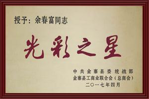 授予:余春富同志光彩之星