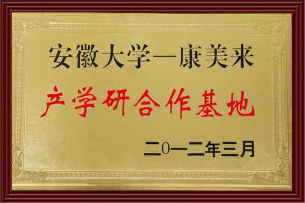 榮獲:安徽大學(xué)—康美來產(chǎn)學(xué)研合作基地