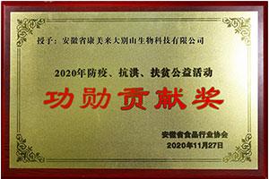 安徽省食品行業(yè)2020年防疫、抗洪、扶貧公益活動“功勛貢獻(xiàn)獎”