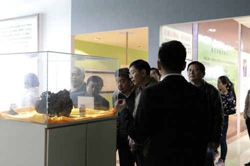 講解員向考察領(lǐng)導(dǎo)介紹公司重量級(jí)產(chǎn)品“桑黃子實(shí)體”