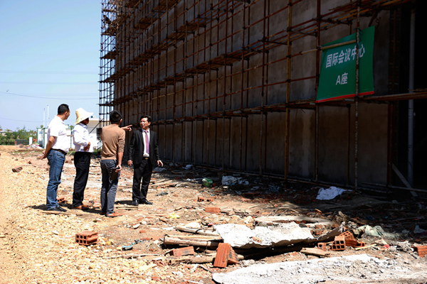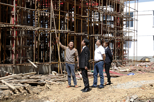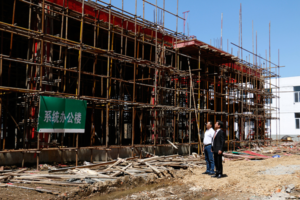 5月16日,公司董事長余春富視察六安總部工程,要求施工單位盡快完成建設工程,為6月份國際會議中心、系統辦公樓及公寓樓的裝修施工創造條件。