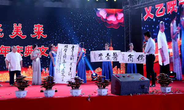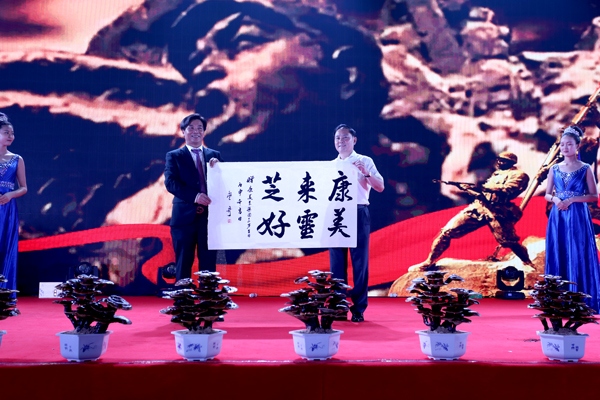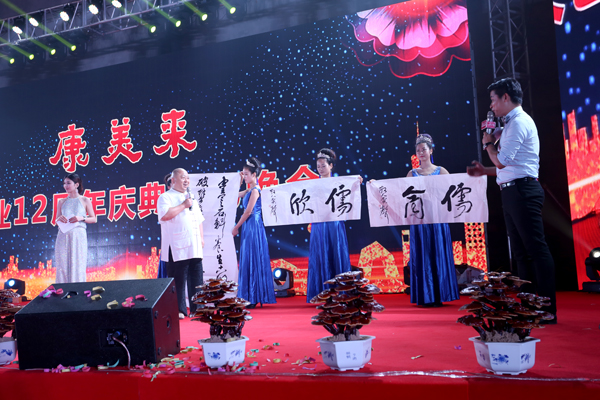 8月21日晚上,康美來12周年慶典文藝晚會在六安舉辦。著名表演藝術(shù)家、鄧小平特型演員盧奇親臨六安,登臺助陣,友情出演?!靶∑酵尽闭J(rèn)為康美來的事業(yè)是一個(gè)造福人民群眾健康幸福的崇高事業(yè),是功德無量的事業(yè),是響應(yīng)黨中央、國務(wù)院“精準(zhǔn)扶貧”的事業(yè),帶領(lǐng)老區(qū)人民脫貧致富。他贊賞并鼓勵(lì)康美來扎根大別山敢闖敢冒的精神,號召大家大膽創(chuàng)業(yè),為中國夢而奮斗!作為書法家的盧奇還現(xiàn)場提筆潑墨,書寫“康美來靈芝好”六個(gè)大字,字如其人,展現(xiàn)出書法功底,并贈送余春富董事長,慶賀康美來12周歲生日和集團(tuán)成立。