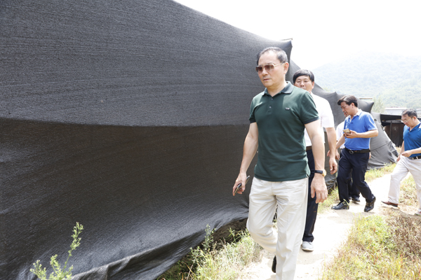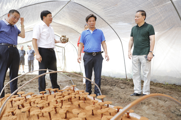 8月22日上午,盧奇在余春富董事長的陪同下,驅車前往金寨縣斑竹園鎮、吳家店鄉的大別山靈芝基地,詳細了解靈芝的仿野生栽培及生長過程。