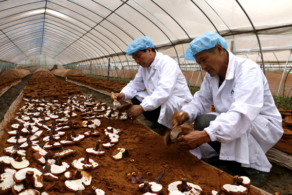 9月3日,康美來大別山靈芝基地桃嶺鄉桃嶺村地塊首日采收靈芝孢子粉及子實體。金寨工廠組織精干力量現場監督采收,余春富董事長親臨基地檢查指導,確保原料品質。