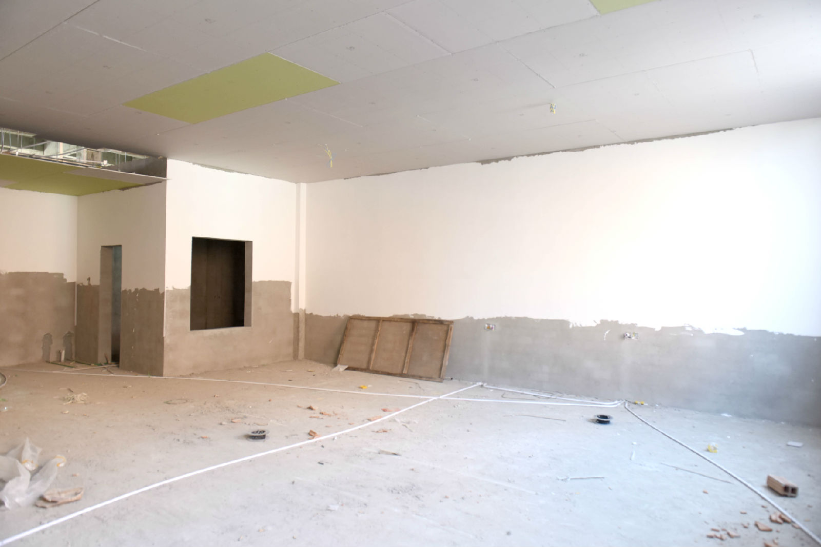 康美來總部經銷商貴賓樓裝修工程正在緊張施工,已完成隔斷、吊頂、水電安置等主要環節,預計12月底前完工。