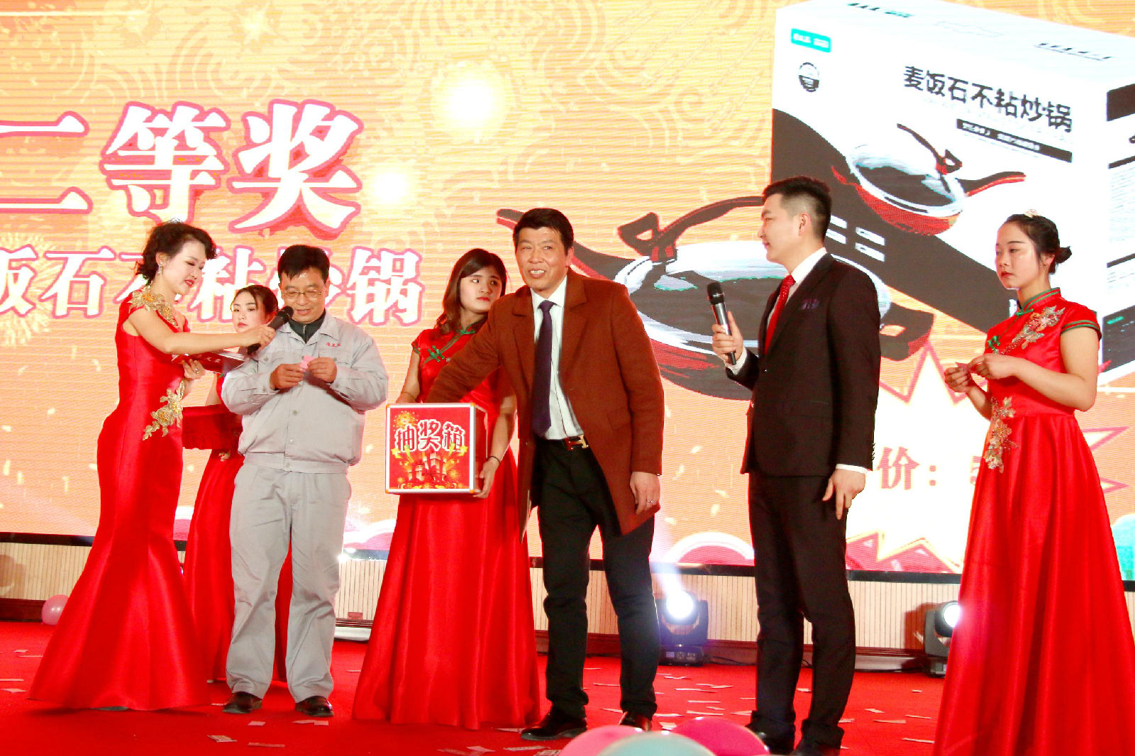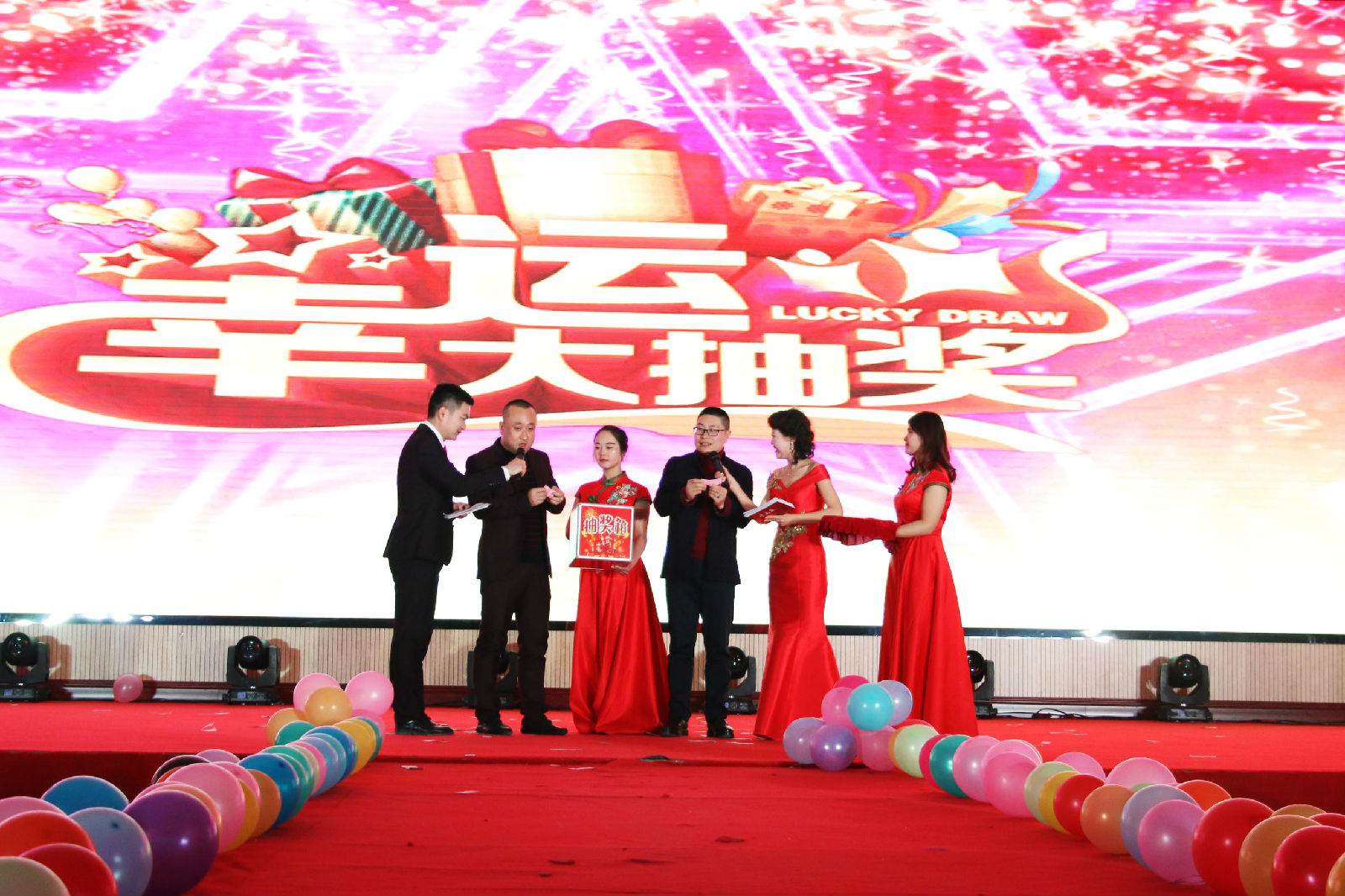 現(xiàn)場一輪一輪的抽獎也讓晚會高潮不斷,驚喜不斷。60名幸運獎,30名三等獎,10名二等獎,5名1等獎,1名特等獎,總計106名家人收獲了公司的幸運獎。