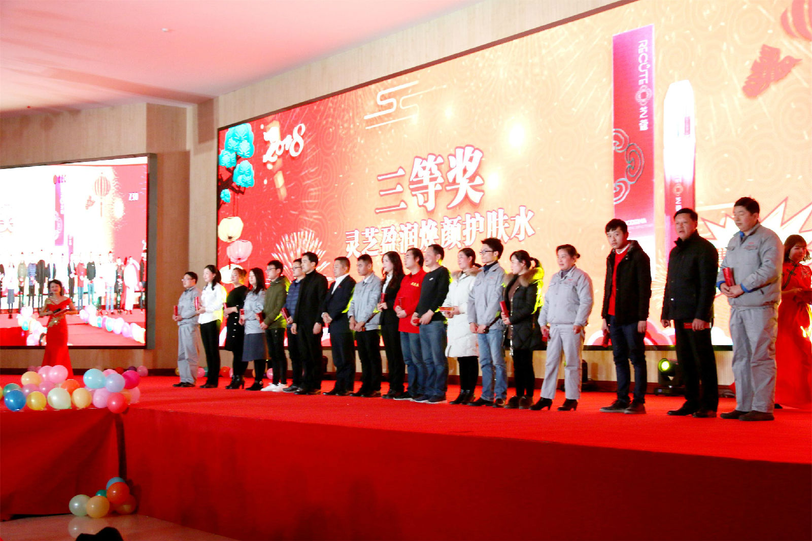 集團各分公司各部門精心準備的年會節(jié)目讓晚會歡歌笑語不間斷。金寨車間的小伙伴準備的舞蹈【恭喜發(fā)財】讓家人們感受到濃濃的年味。