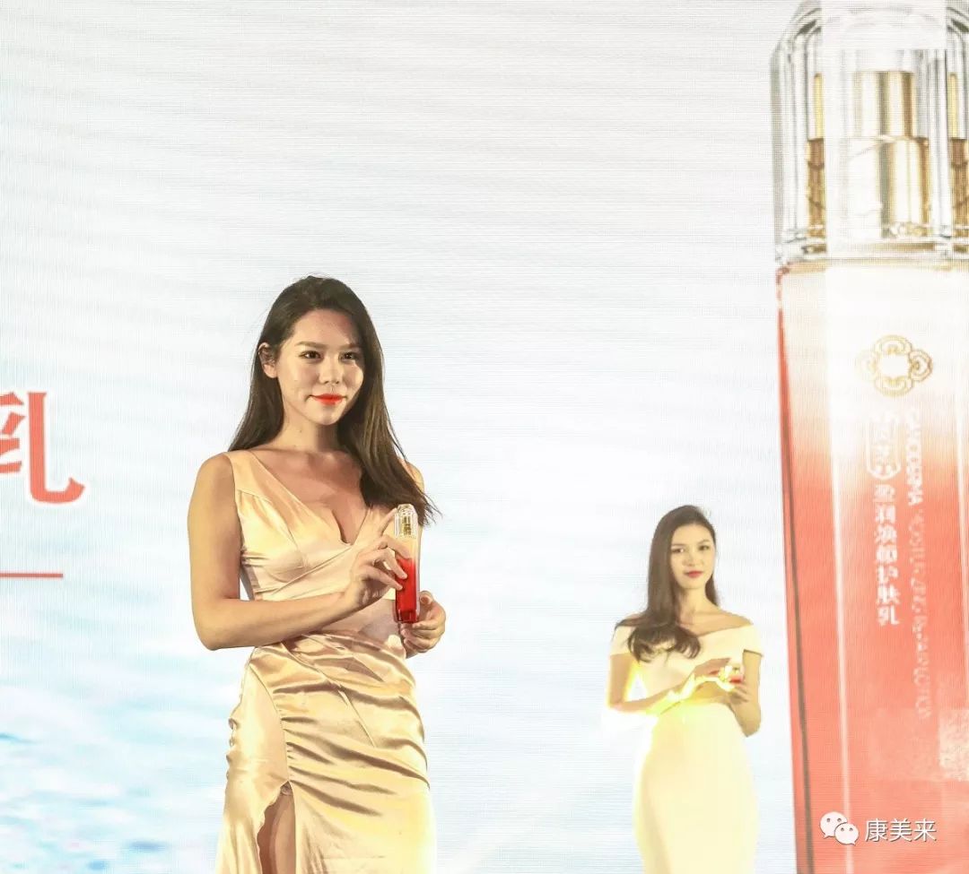 會上,邀請了香港模特展示靈芝系列護膚品,新品與佳人同臺相映,光彩奪目,主持人同時畫外音朗讀余董親自賦詩一首“再問羅敷年幾何?”
