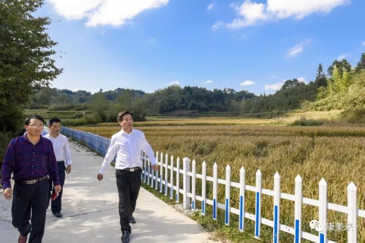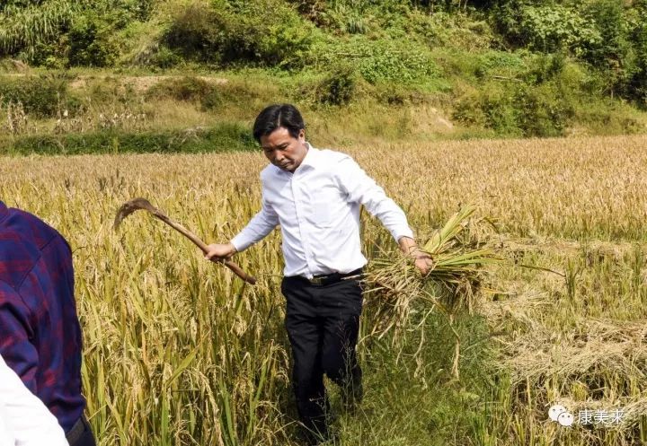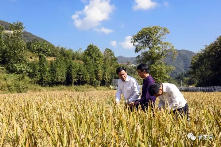 8日下午,余春富前往雙河鄉大畈村有機香稻基地。雙河有機香稻基地位于雙河鄉大畈村,基地負責人葉乃兵擁有十多年有機稻種植經驗,是金寨縣著名種植能手。雙河基地有機香稻規模300畝,周邊山谷生態良好,海拔高達502米,屬高寒山區。綠色的山谷,金色的稻田,飽滿的谷穗,在微風中搖曳。老葉向余董匯報過兩天就可以收割,正在組織人力及準備工作。余董指示,收割后,馬上播種紅花草,秸稈還田,提高土壤有機質水平,為明年生產打好基礎。總裁助理尹維龍陪同視察。
