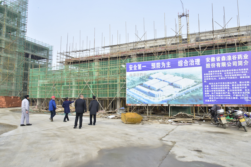 1月13日上午,康美來集團董事長余春富視察森湶谷藥業項目工程建設,項目一期已經完工90%。