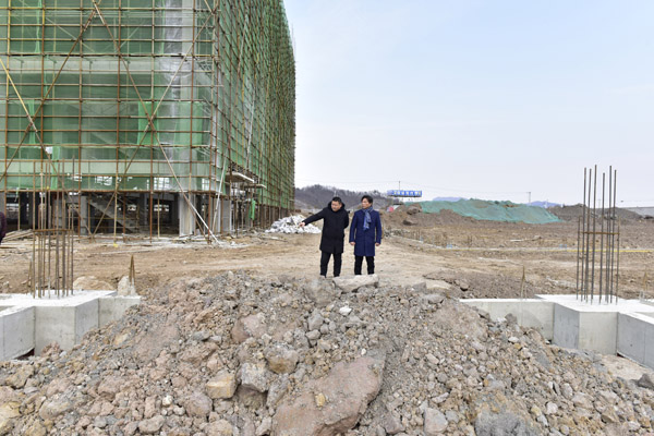 在倉儲車間廠房工地,余董對工程質量表示滿意,他說:“我們要對下一代人負責,一定要堅固,防震防水,依法依規(guī)建筑廠房。”