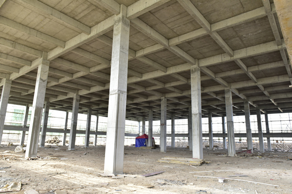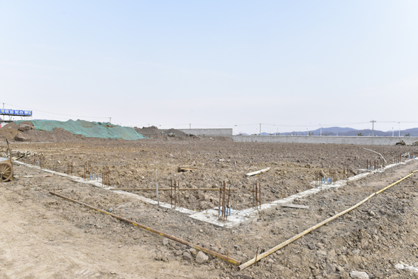 進入項目工地大門后,首先進入視線的是實驗樓,基礎已經完成,公寓樓已完成一層。