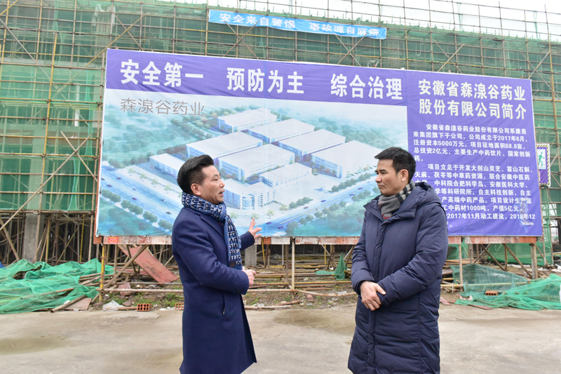 余春富董事長向王琦主任重點匯報森湶谷藥業項目工程建設投資進度及投產計劃,并對六安市的營商環境表示滿意,對開發區領導的關心支持表示感謝!