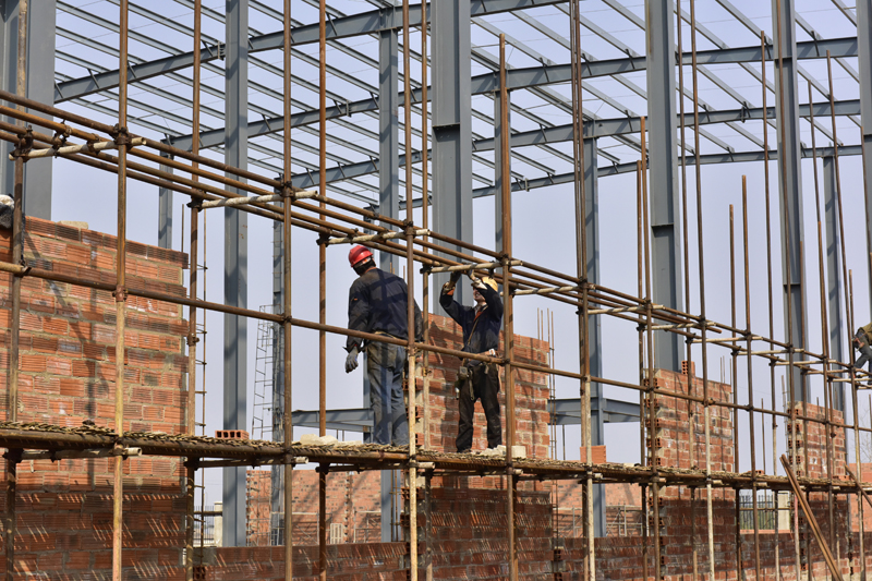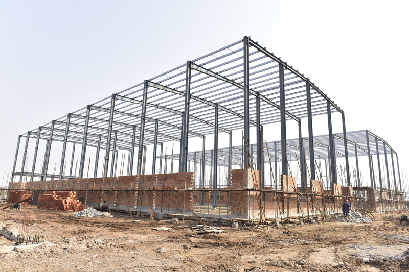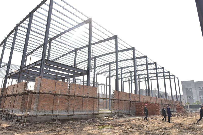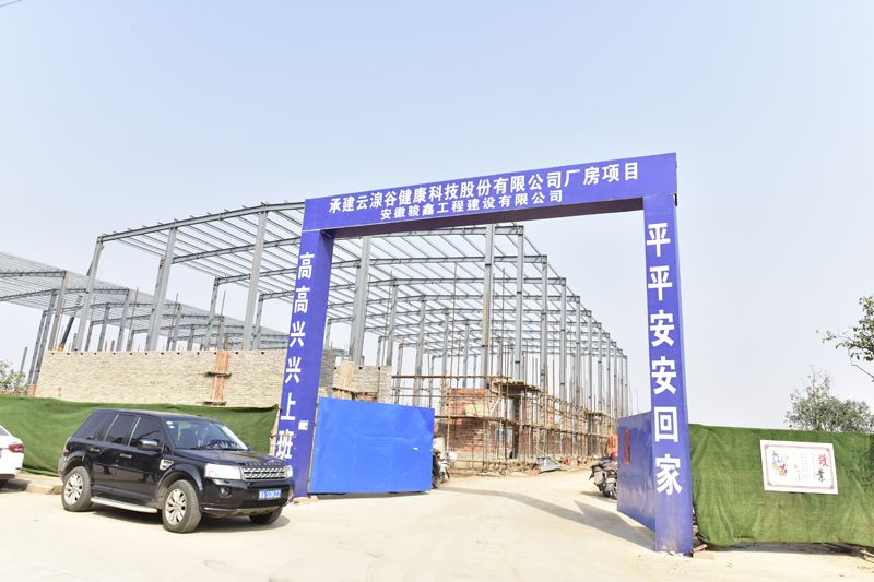 目前三棟鋼結構廠房正在抓緊施工,其中保健食品車間和有機米及土雞蛋加工車間廠房已經完成主體吊裝,倉儲車間正在吊裝主體鋼架。