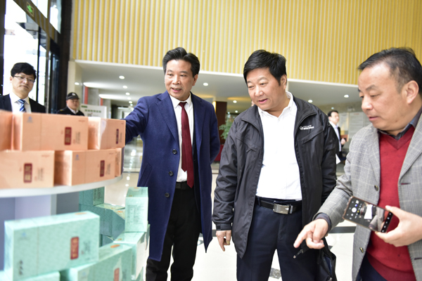 4月2日上午,安徽省商務廳市場秩序處張志處長、儲成浩副調研員到康美來集團檢查指導,六安市商務局局長時軍、副局長李大俊陪同檢查指導。