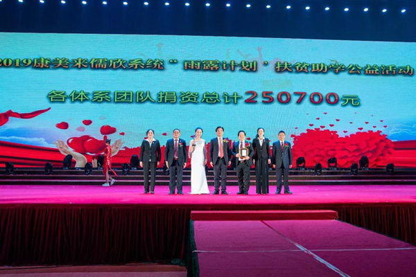 2019年12月30日,康美來儒欣經銷商團隊在江陰召開2019年度“雨露計劃”扶貧助學公益活動暨表彰盛典。