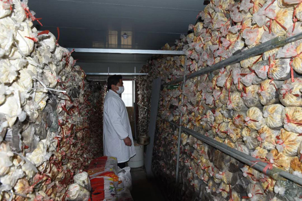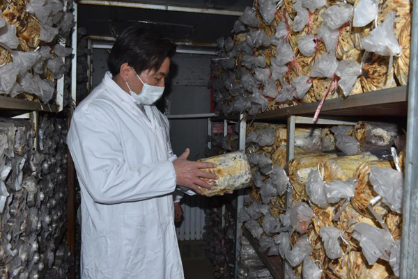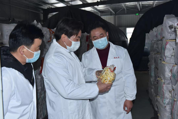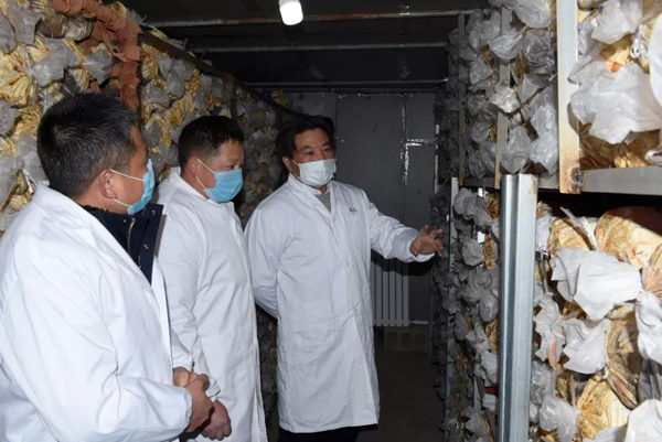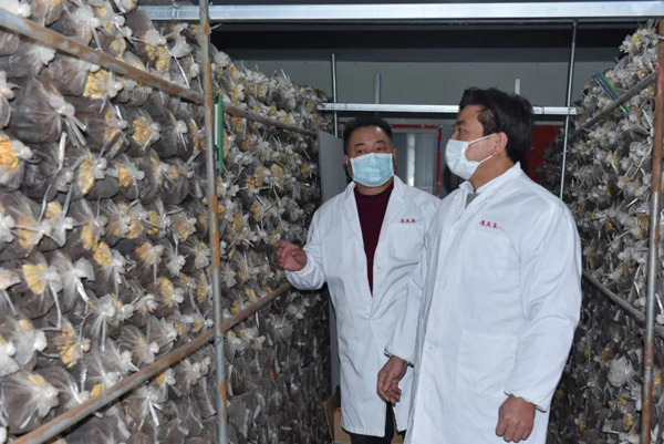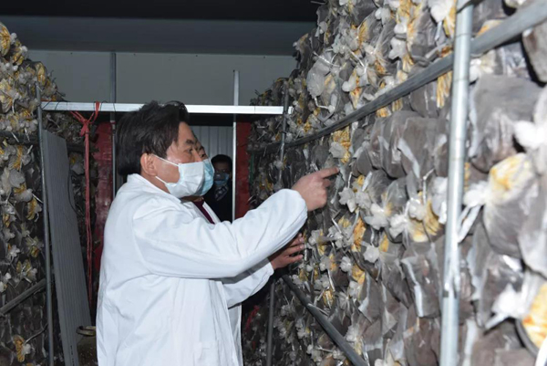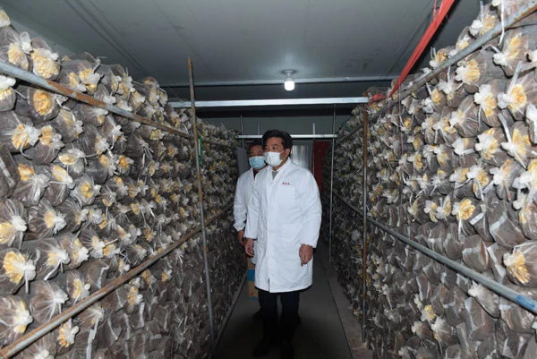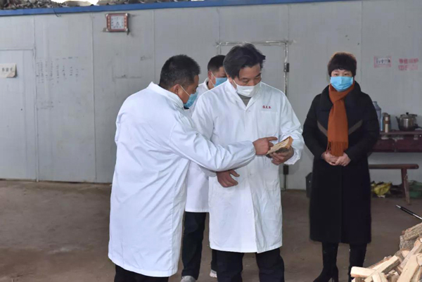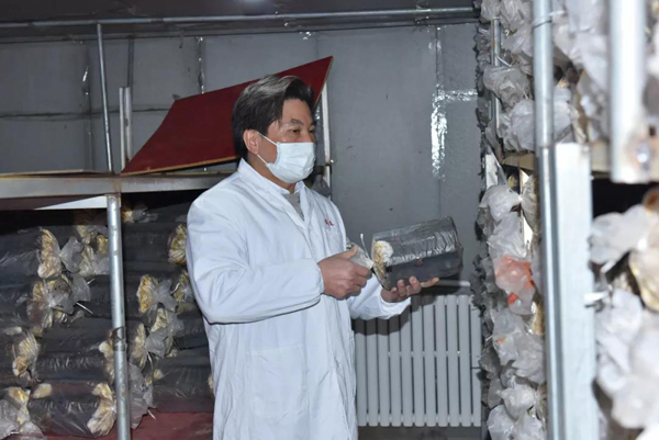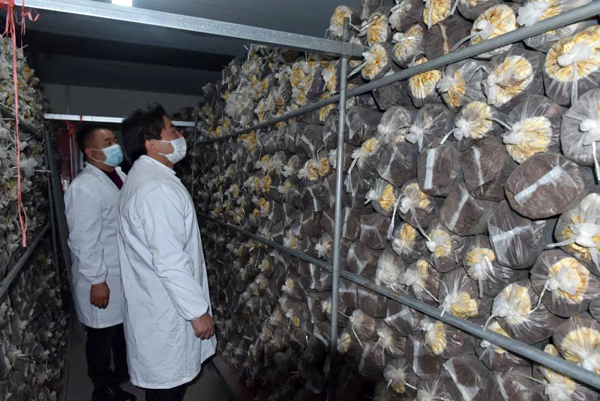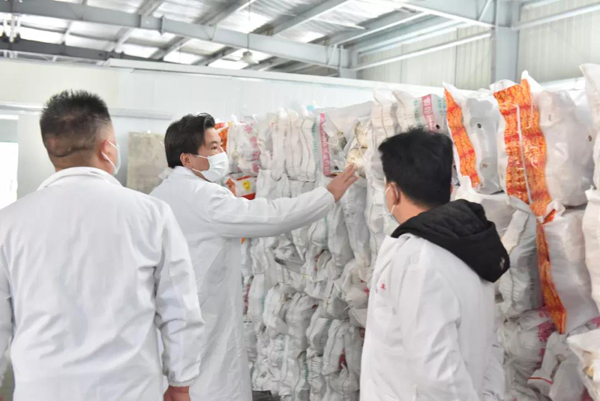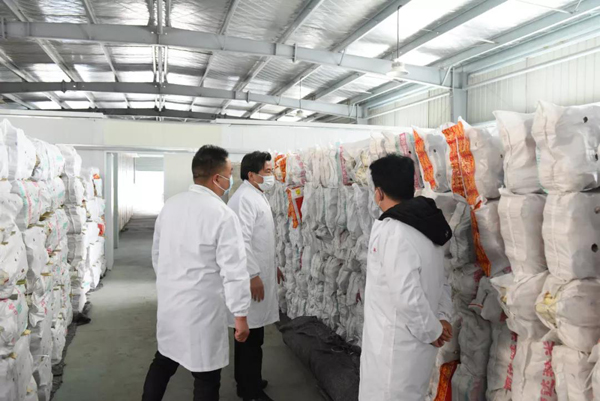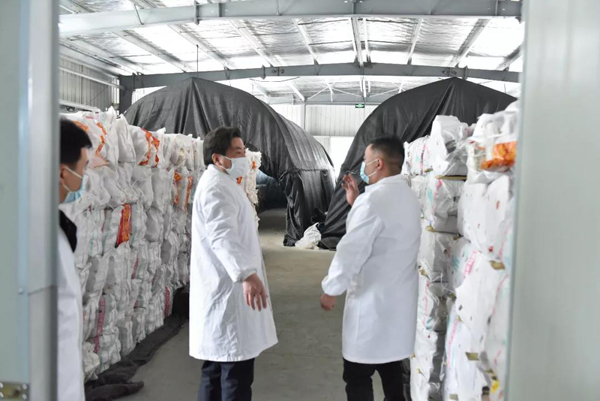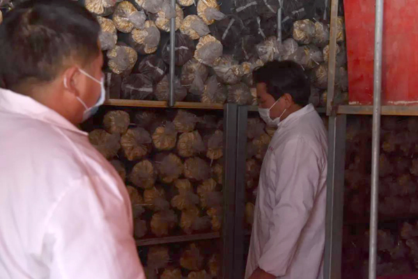 余董到基地最關心的是今年菌棒生產和養菌情況。來到新建的菌棒生產基地,基地負責人黃總介紹:完全按照公司制定藥材標準生產,選用最優最合適的多年生椴木生產菌棒。