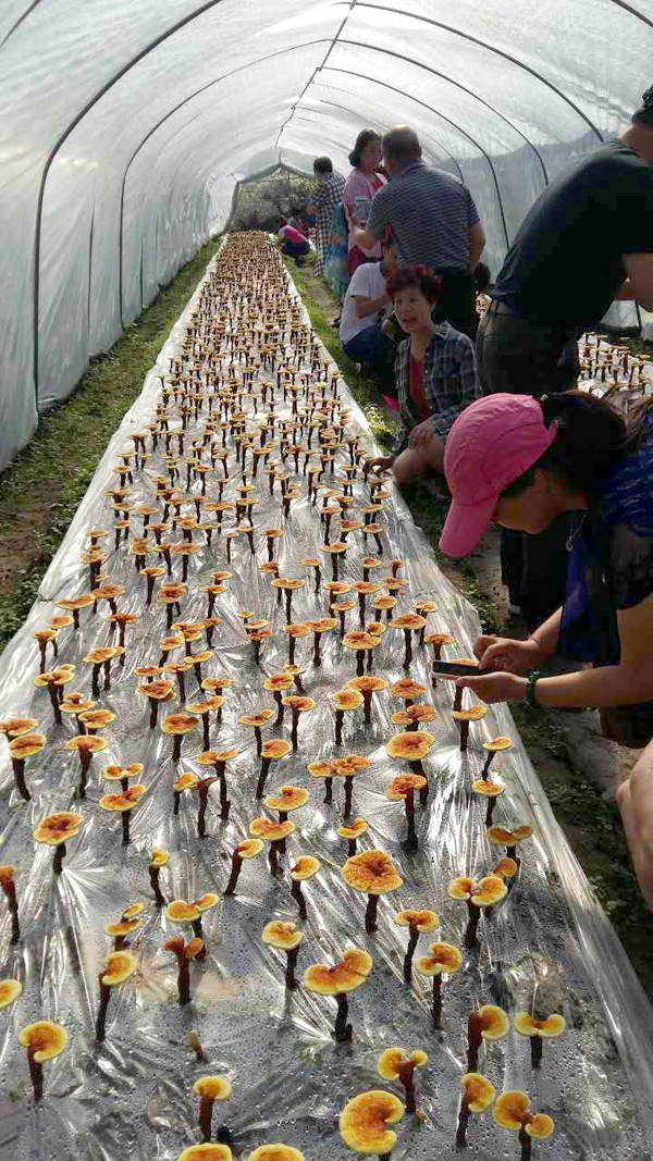大別山是靈芝的原產地,現在正是靈芝最美麗的季節,色彩鮮艷,形態秀美??得纴硪殉蔀榇髣e山地區最大的標準化靈芝種植基地,并通過有機認證。金寨縣政府有關部門領導參加了開幕式。